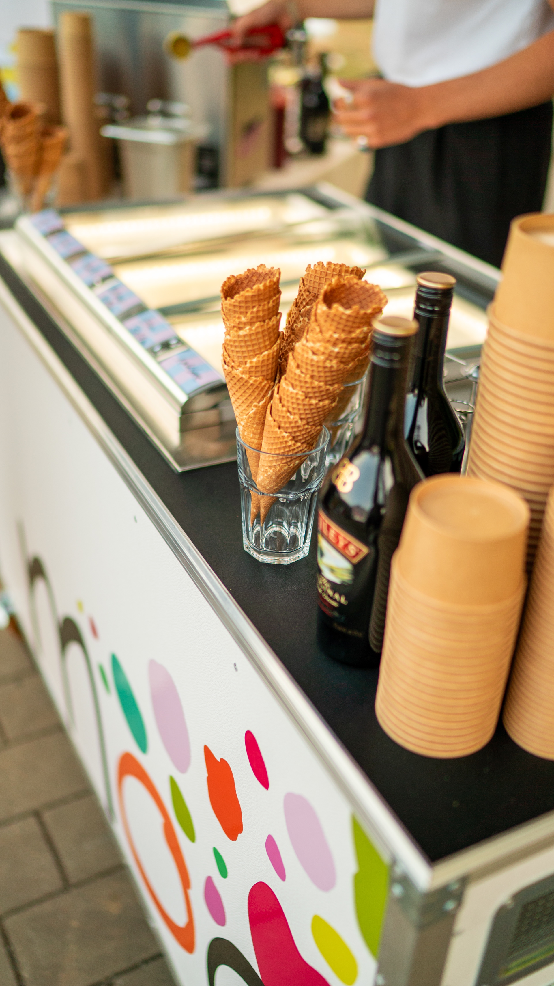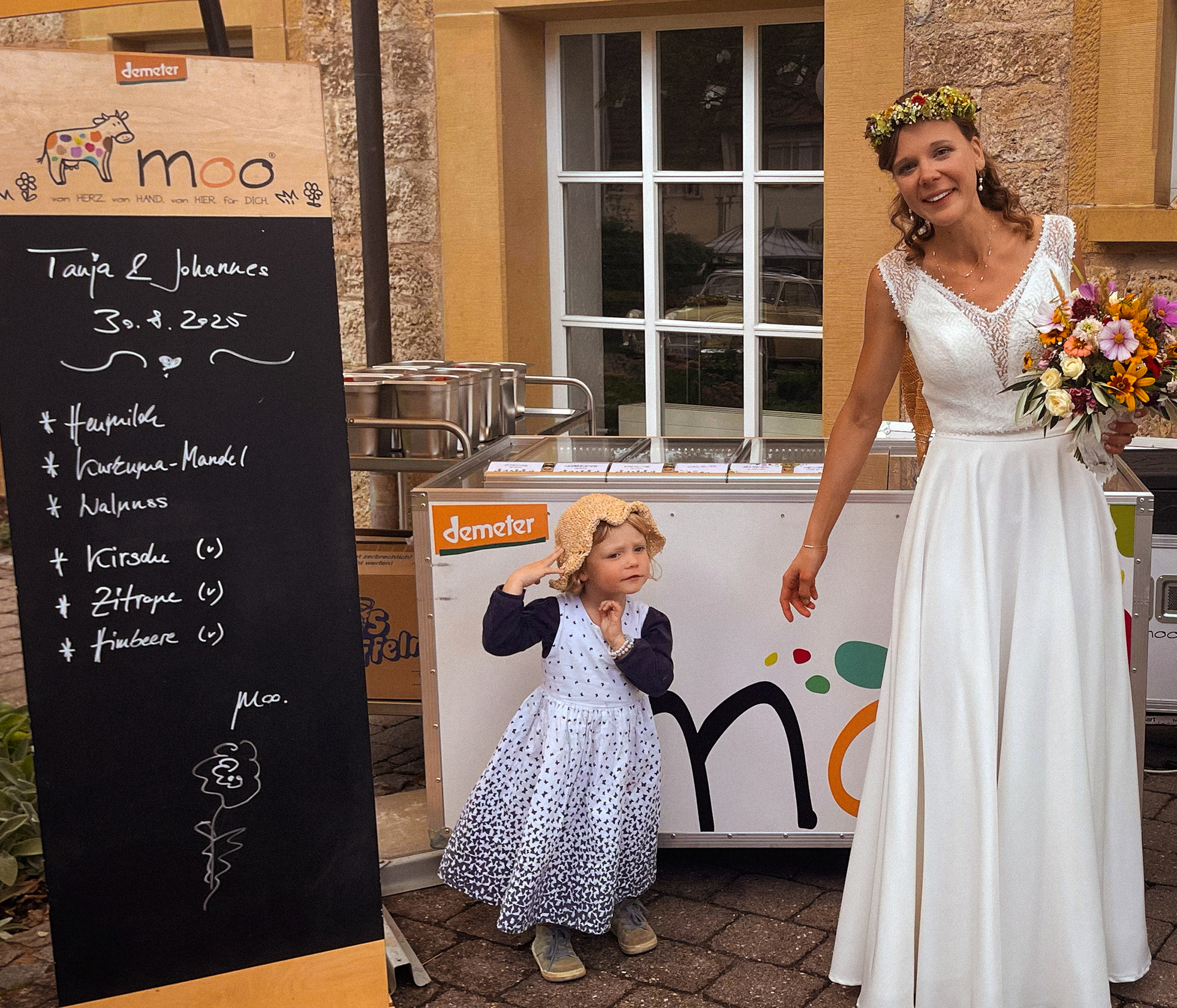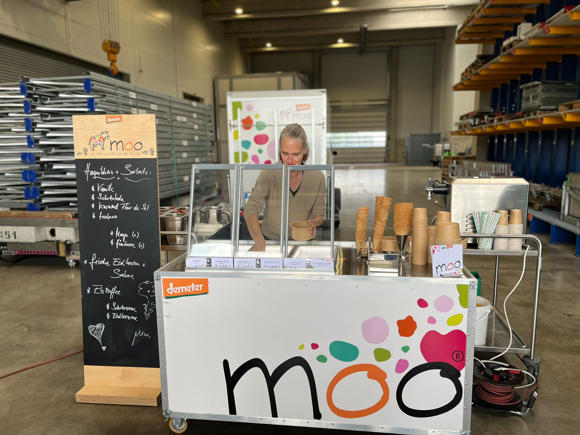 Ob Jubiläum, Sommerfest oder Weihnachtsfeier, ob Hochzeit, Geburtstag oder just for fun… die mobile moo Eistheke ist ein echter Eyecatcher und versüßt Euch jedes Fest mit sechs individuelle Eissorten, Sahnemaschine und feinsten homemade Toppings - so schmeckt es einfach moo!