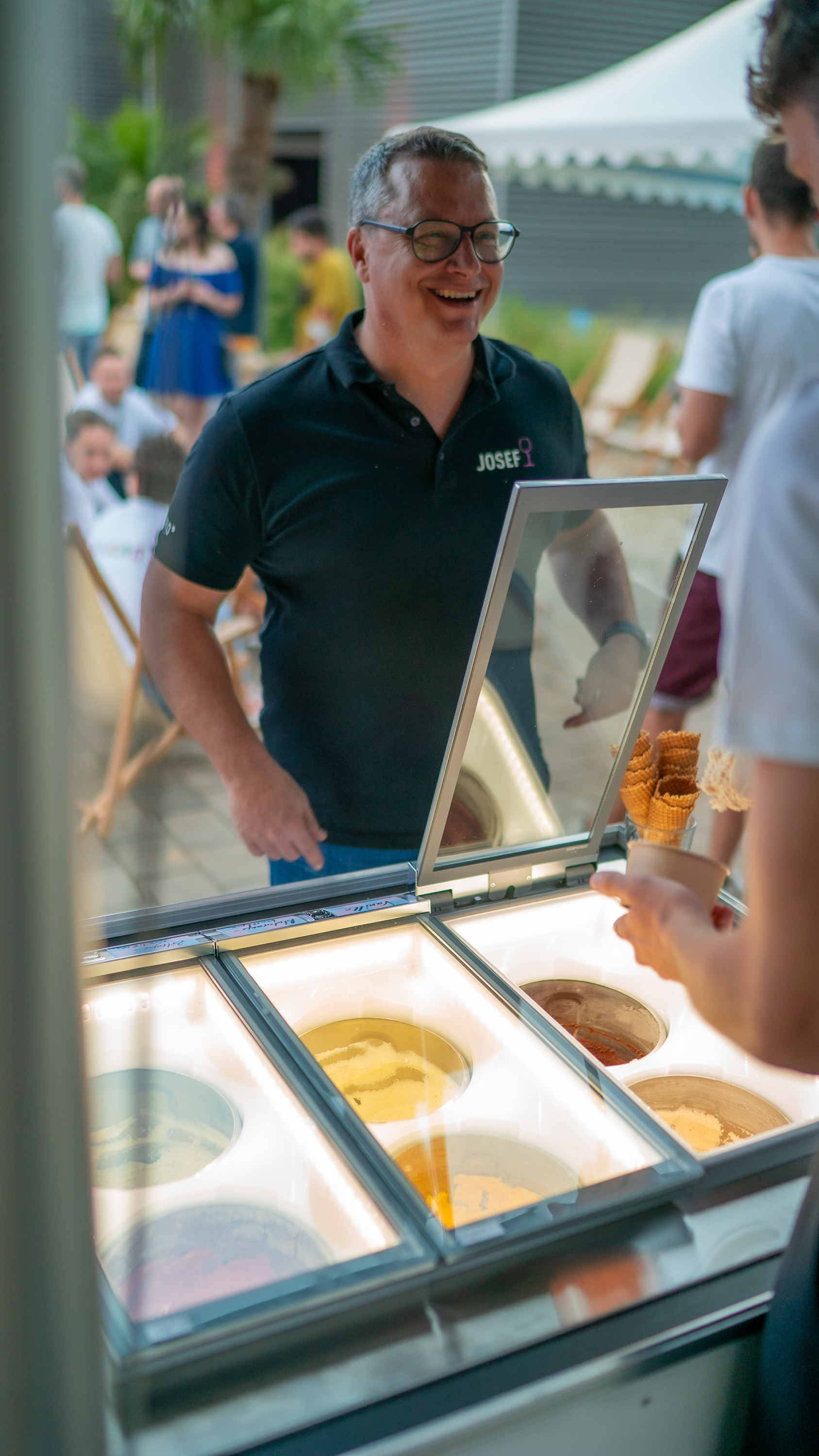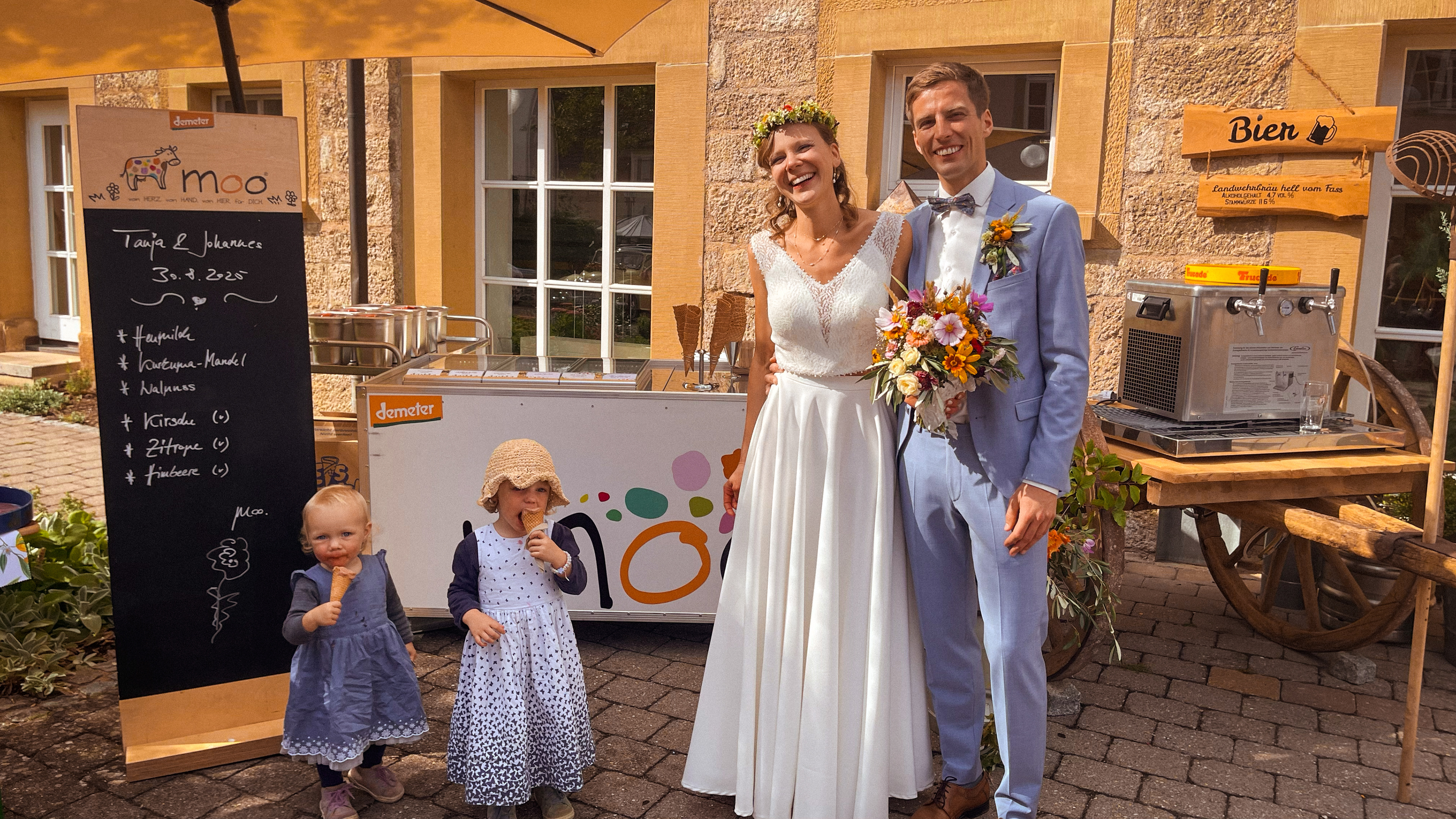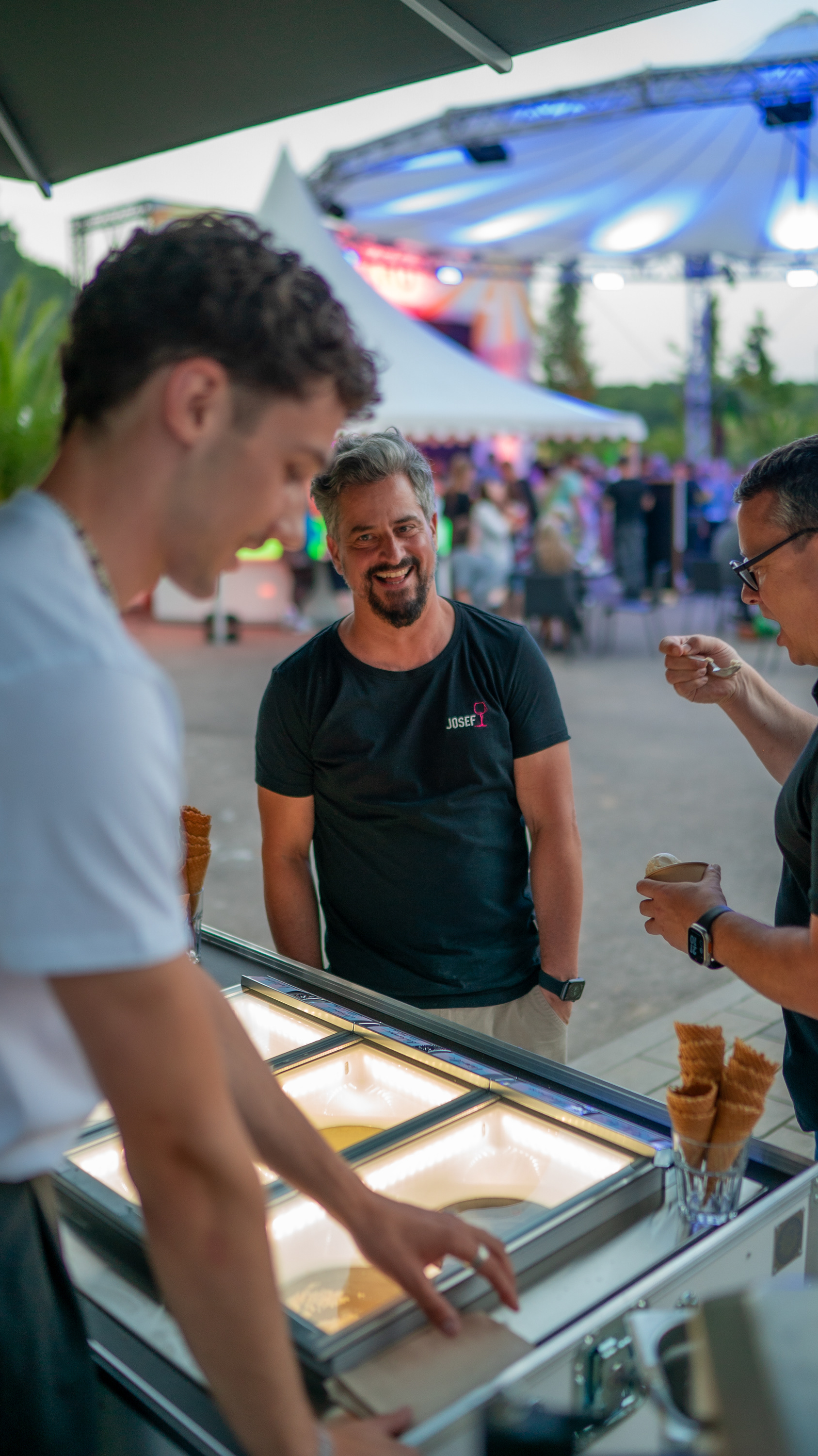 Ob Jubiläum, Sommerfest oder Weihnachtsfeier, ob Hochzeit, Geburtstag oder just for fun… die mobile moo Eistheke ist ein echter Eyecatcher und versüßt Euch jedes Fest mit sechs individuelle Eissorten, Sahnemaschine und feinsten homemade Toppings - so schmeckt es einfach moo!